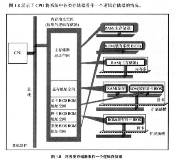 通过总线链接起来的各种设备都被当做一个由若干存储单元组成的逻辑存储器就是内存地址空间。