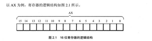 8086CPU所有的寄存器都是16位的,可以存放两个字节(2B=2*8位=16位)。AX,BX,CX,DX通常用来存放一般性的数据被称为通用寄存器。