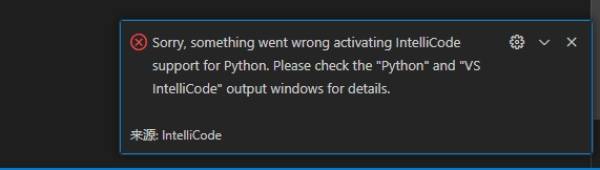 Sorry, something went wrong activating IntelliCode support for Python. Please check the “Python” and “VS IntelliCode” output windows for details.